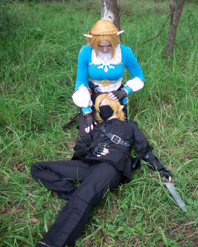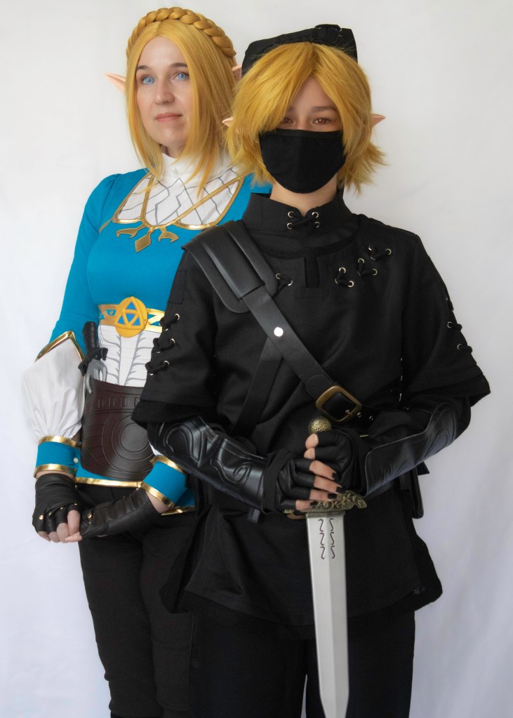 - Link: A green long-sleeve top, brown belt, and a toy sword will get the job done. Bonus points if you add elf ears! A makeshift shield can be created with cardboard and paint.